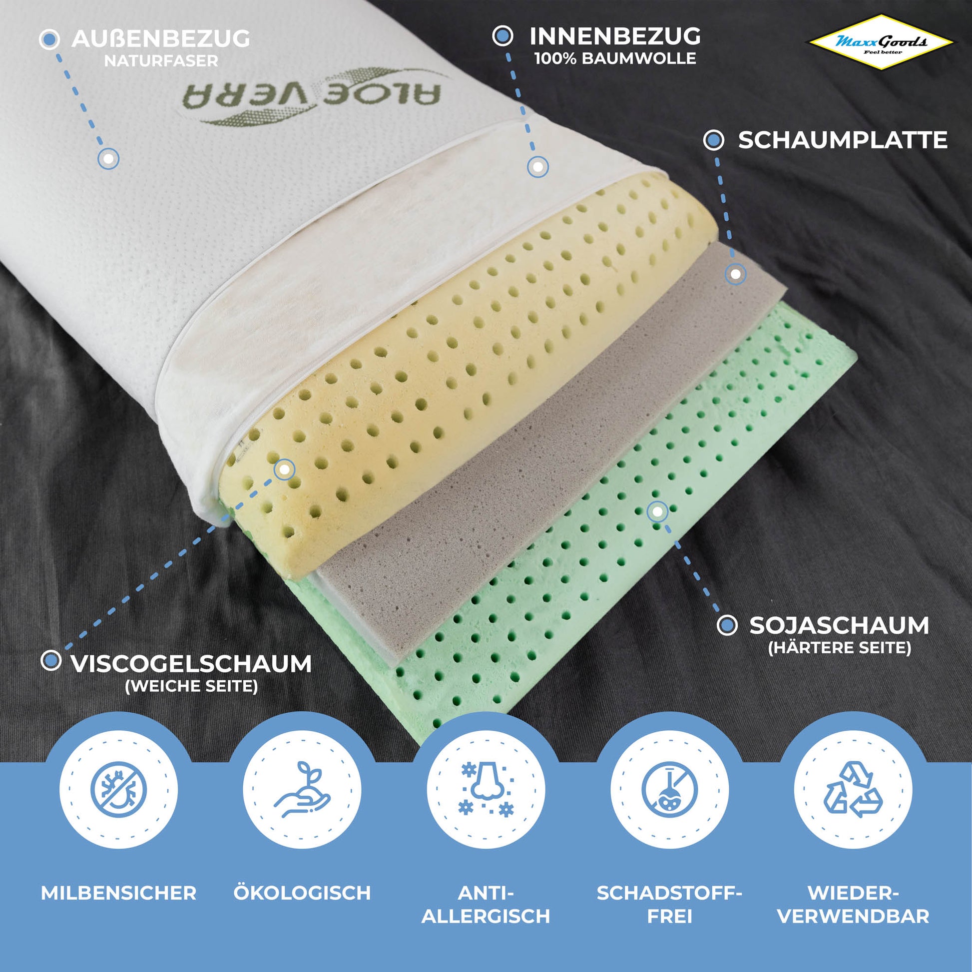 - Sie können selbst entscheiden für einen weicheren Schlafkomfort ( heller Visco Gelschaum ) oder einen etwas festeren Schlafkomfort ( grüner Sojaschaum )
