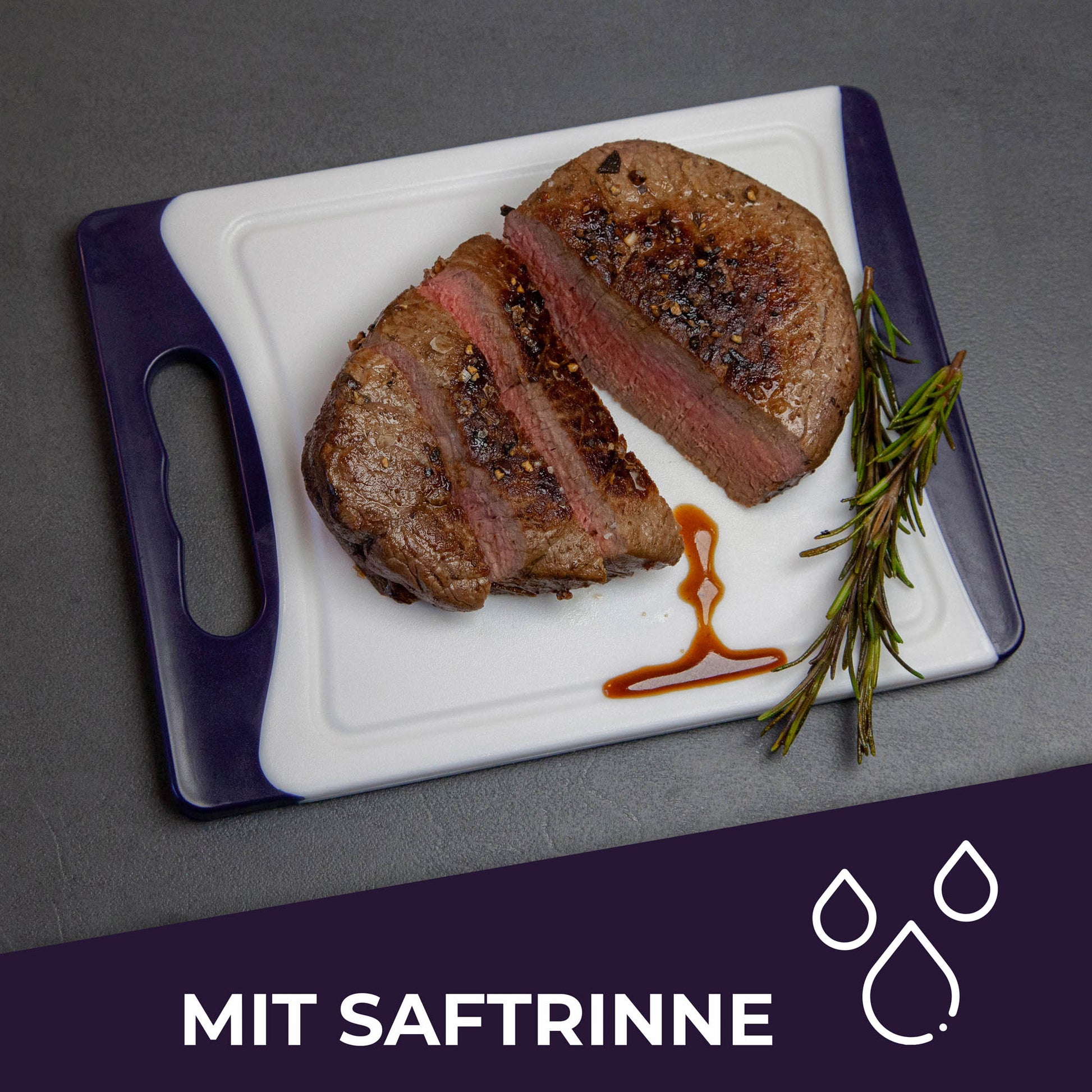 • BEIDSEITIG VERWENDBAR: Die eine Seite verfügt über eine Saftrille, die andere ist komplett glatt.
