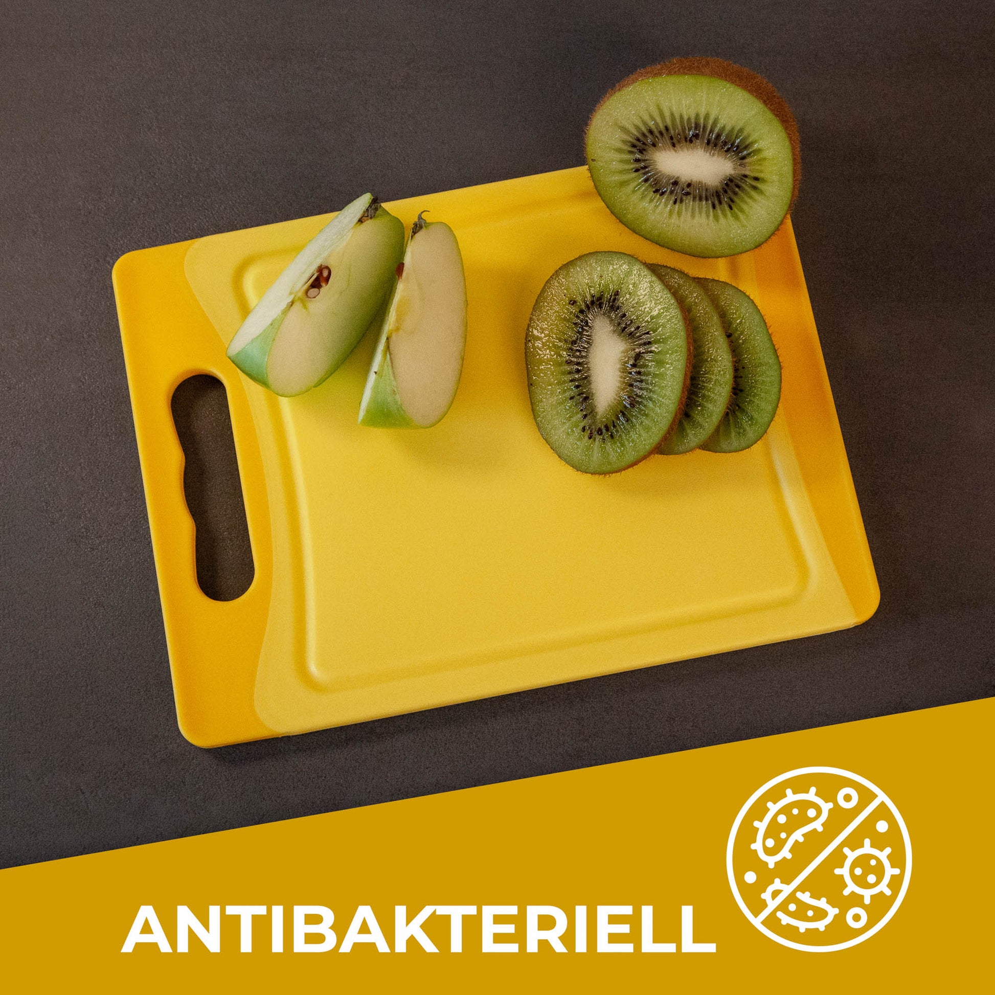 • ANTIBAKTERIEL/HYGIENE: Der Antibakterielle "Zeomic" Schutz verhindert das Wachstum von Bakterien, schützt das Schneidebrett vor Geruch und Flecken. Die unterschiedlich farbigen Bretter können für unterschiedliche Lebensmittel verwendet werden. So vermeiden Sie eine Kreuzkontamination.