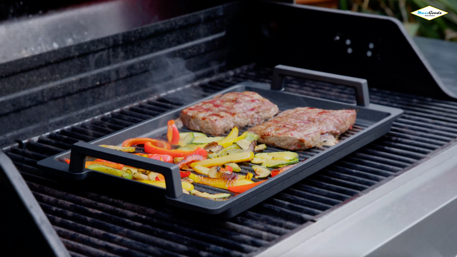 - Mit den Maßen 41 x 24 x 2,5 cm und der durchgängig gerippten Grillfläche bietet die Grillplatte ausreichend Platz zum garen und braten von Fleisch, Fisch oder Gemüse.