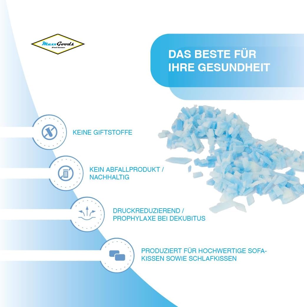 - [VIELSEITIG EINSETZBAR] Produziert für hochwertige Sofakissen sowie Schlafkissen – die Viscoschaum-Sticks passen sich jeder Form an und sorgen für angenehmen Liegekomfort. Sie sind in verschiedenen Packungsgrößen von 500g bis 5Kg erhältlich und bieten individuelle Anpassungsmöglichkeiten, etwa durch Variation der Höhe und Härte. Besonders geeignet auch zur Prophylaxe von Dekubitus, um Druckstellen zu vermeiden.